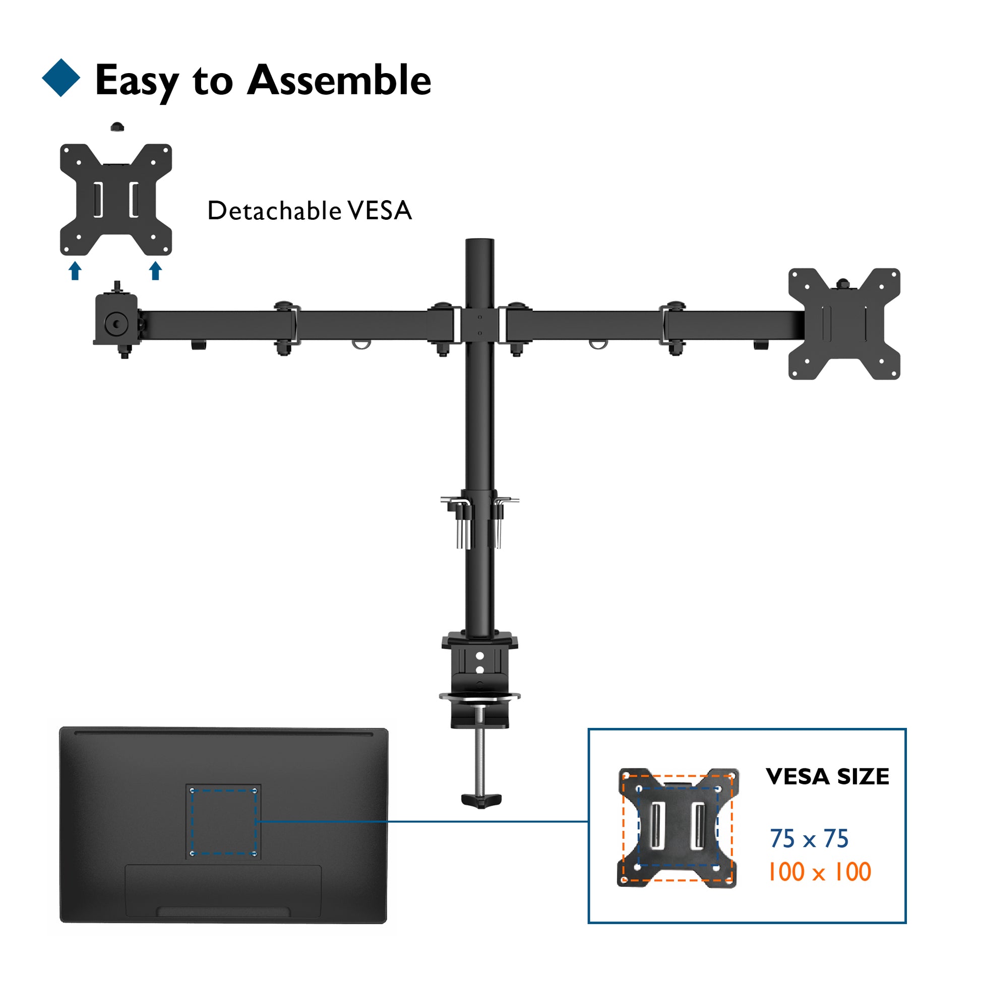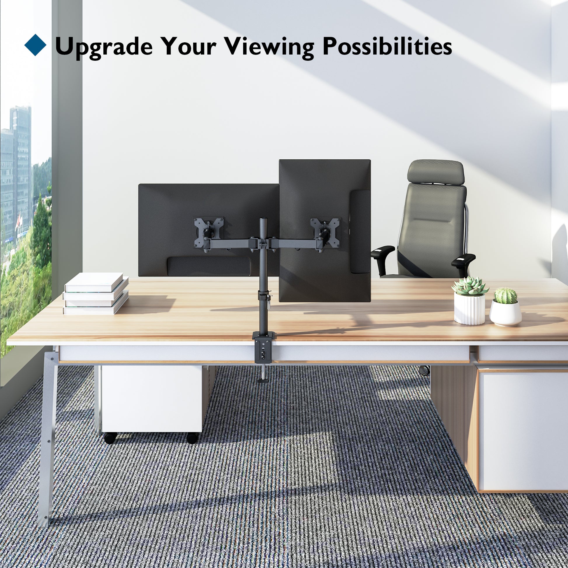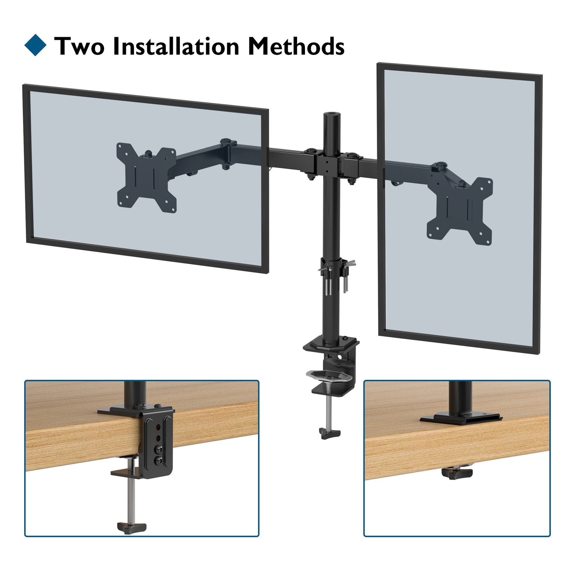Special Features: BONTEC dual monitor stand with the concealed wiring design, keeping your desk tidy and clean; This dual monitor stand has storage slot for Allen keys. And this double monitor stand comes complete with instructions plus all fixtures and fittings needed for simple installation. This dual monitor arm get your 2 monitors up and improve your workspace, is your best choice. Bringing you double the visual experience and double the efficiency