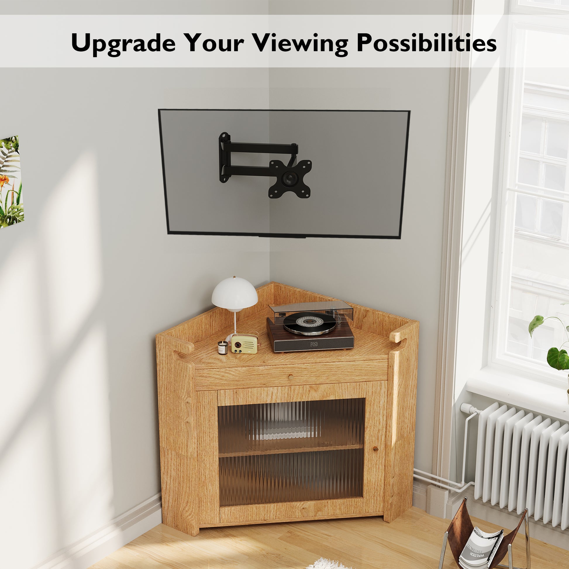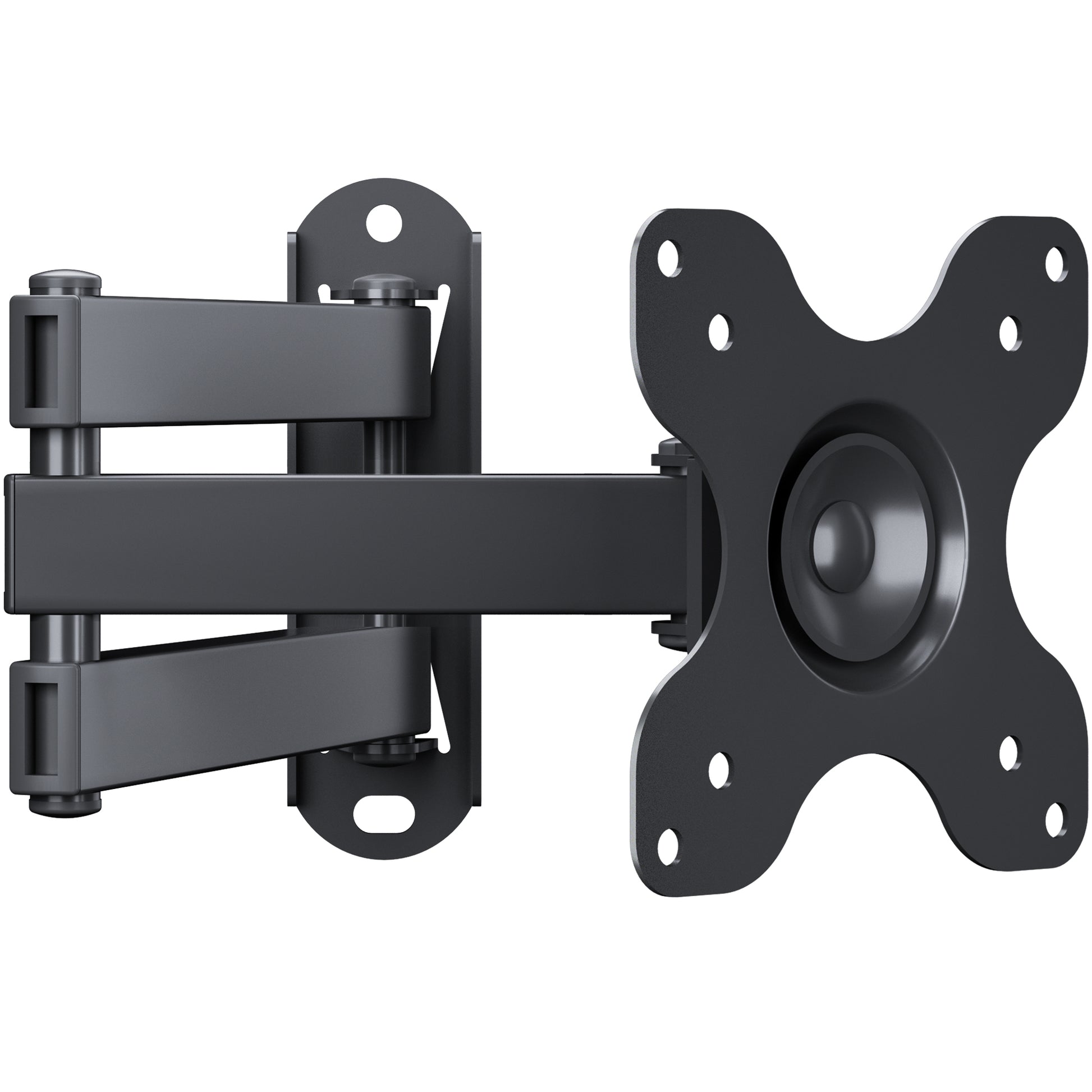 This mount bracket fits LCD/LED TVs from 13" to 30" with a maximum load capacity of 15kg. It is compatible with VESA size of 75x75mm or 100x100mm. Constructed of heavy-duty powder-coated steel, the TV bracket is very sturdy and durable. Simple assembly. A spirit level, 3 cable ties, installation instructions and all the necessary hardware are included. Thanks to the extended articulating system, this TV bracket extends out up to 38.2 cm from wall and swivels with wide-angle between -180° to +180° to achieve a comfortable viewing position. The VESA plate also features +/-10° tilting, +/-90° swivel and 360° rotation, allowing maximum flexibility for optimal watching angle.