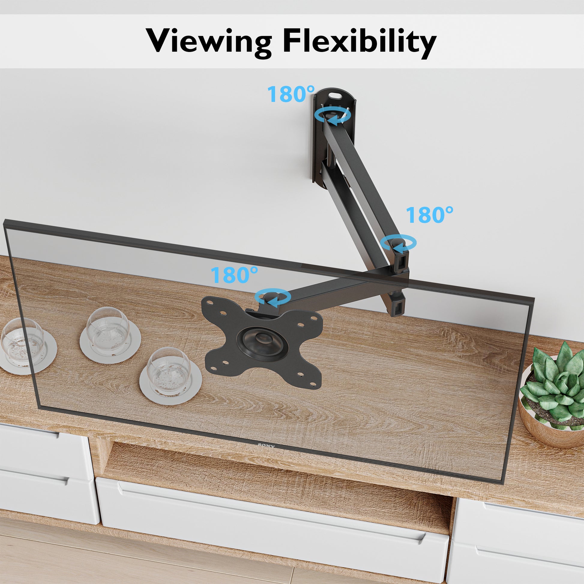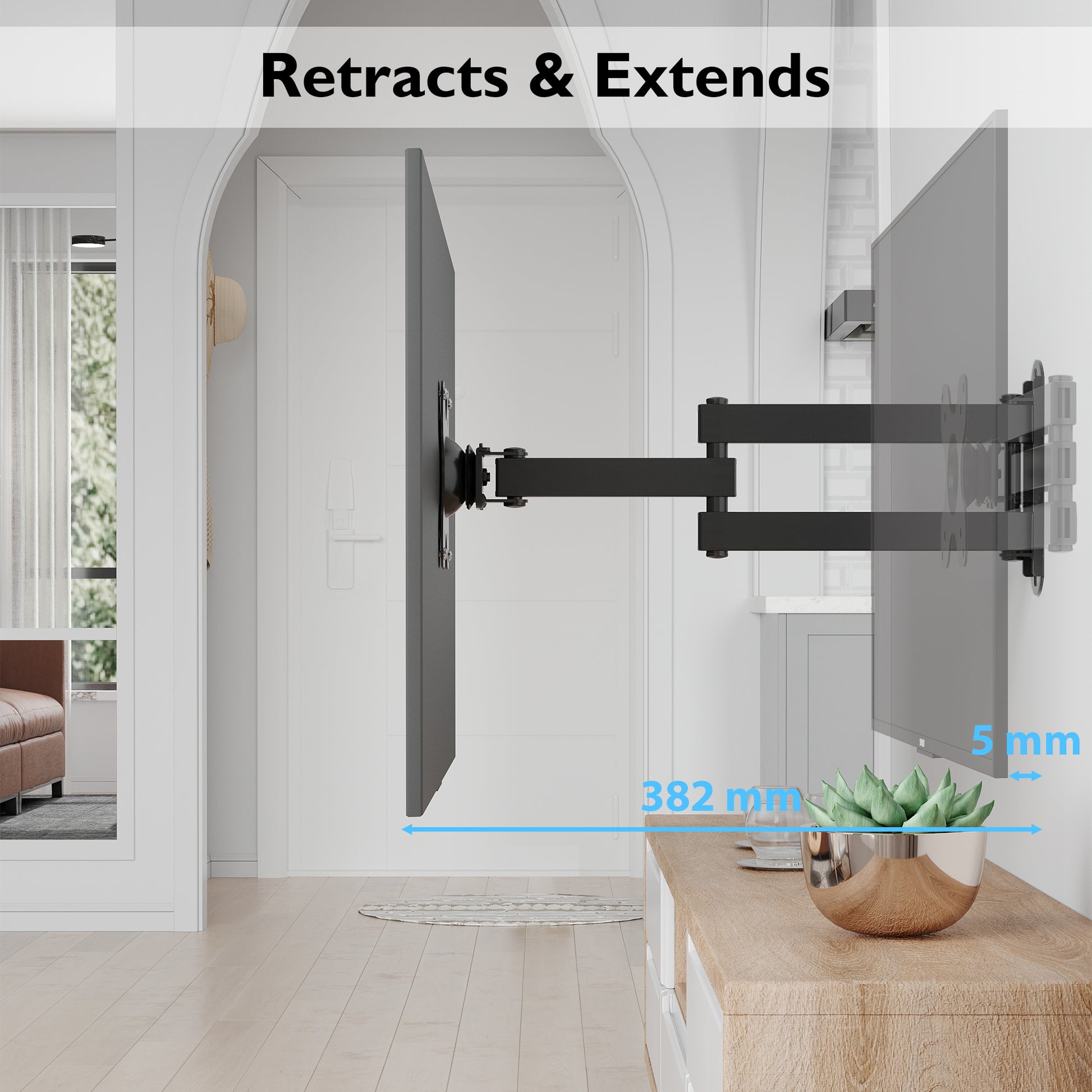 - Extended articulating system: Wide-angle swivel between -180° to +180° meets different viewing needs; extends out up to 15" from wall and retracts to 1.75" to save space