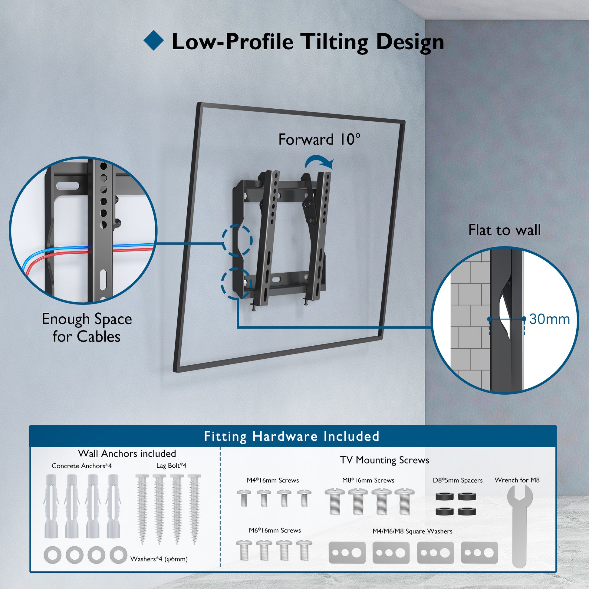 - Improve Your Viewing Experience: This TV bracket comes with a tilt feature that allows you to tilt forward 0-10°