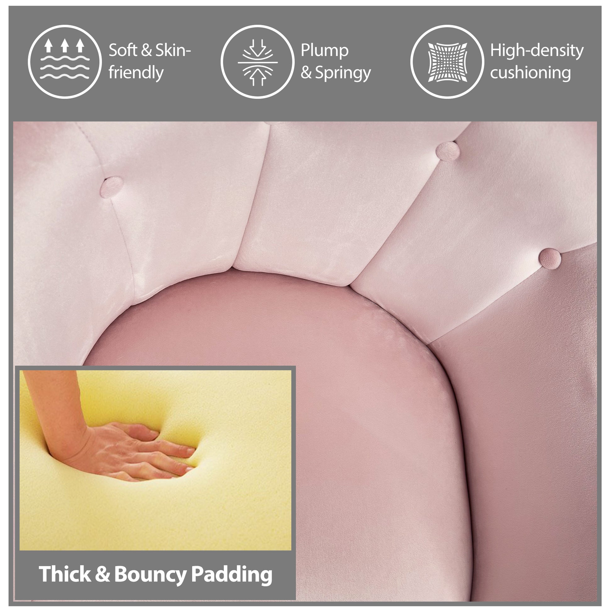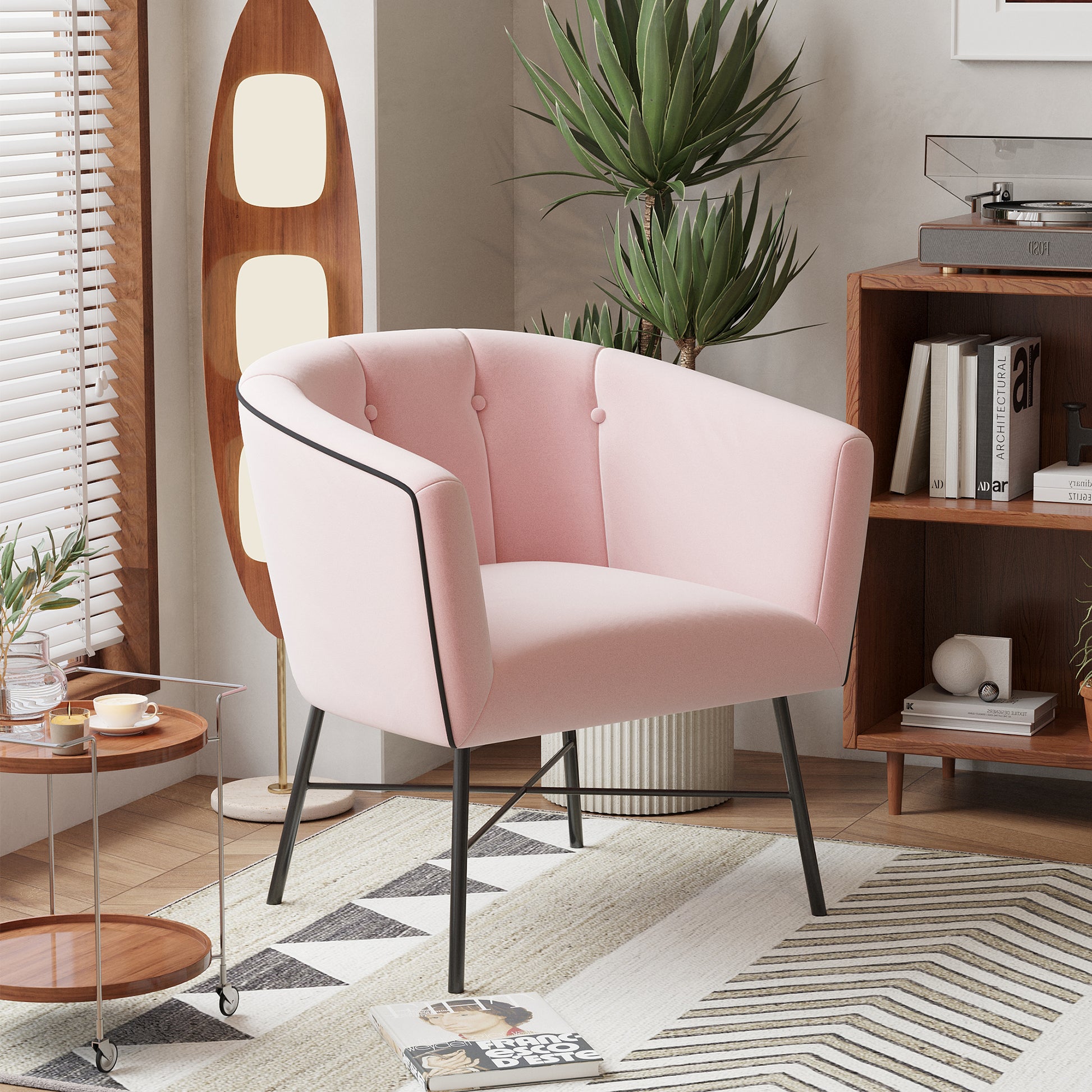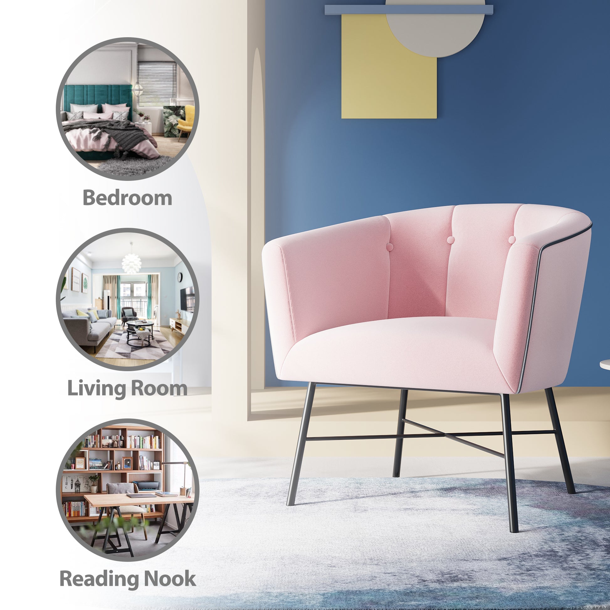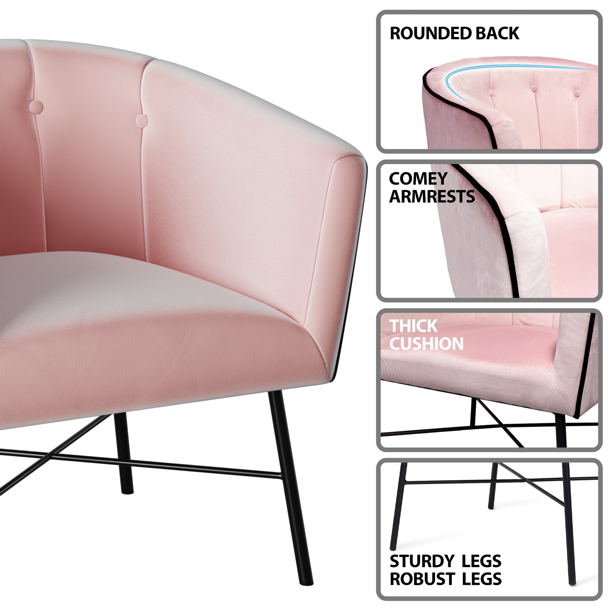BONTEC Modern Velvet Tub Chair, Upholstered Accent Vanity Chair with Mental Legs, Barrel Armchair for Living Room, Bedroom, Makeup Room, Lounge, Cafe, Pink