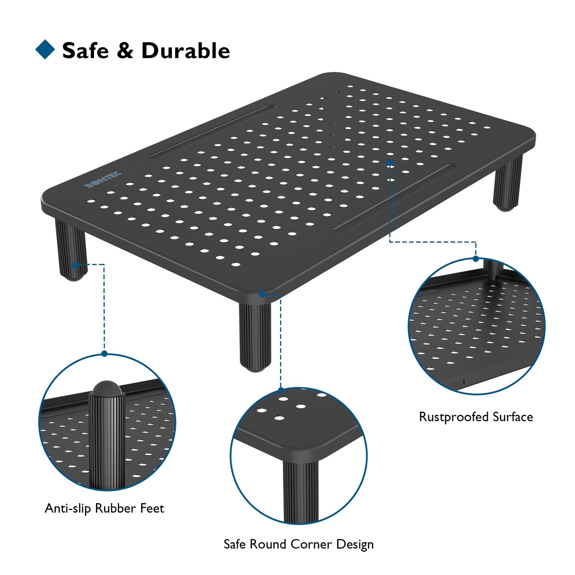 BONTEC Monitor Stand Riser, Computer Monitor Riser Stand with Mesh Platform for Laptop, Computer, iMac, PC up to 25KG with Pen Holder, Cable Management Slot