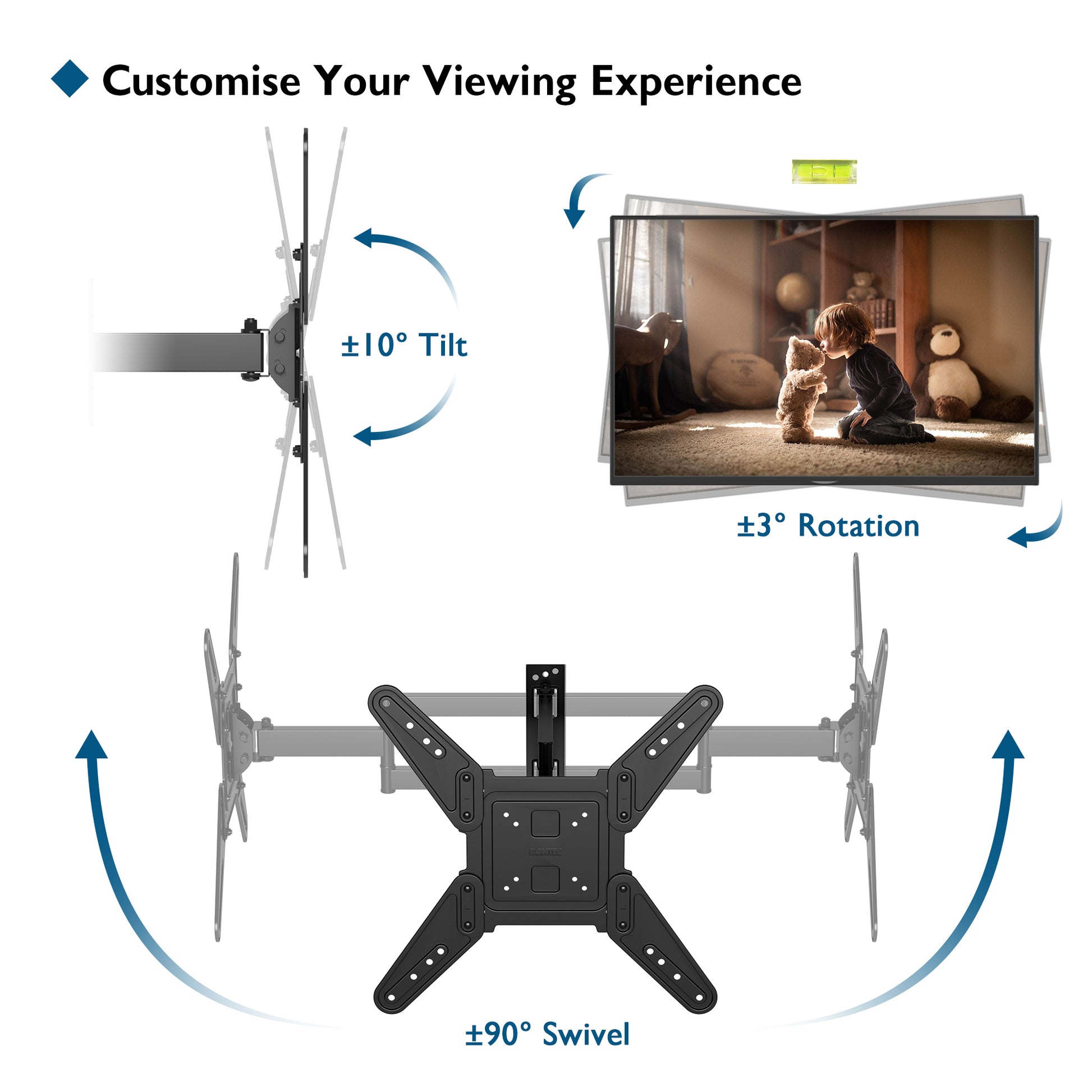 - Optimised Viewing Experience: This TV wall mount features +/-10°tilting, +/-90°swivel (maximum swivel angle depends on TV size), and +/-3°rotation adjustment, allowing maximum flexibility for optimal viewing.