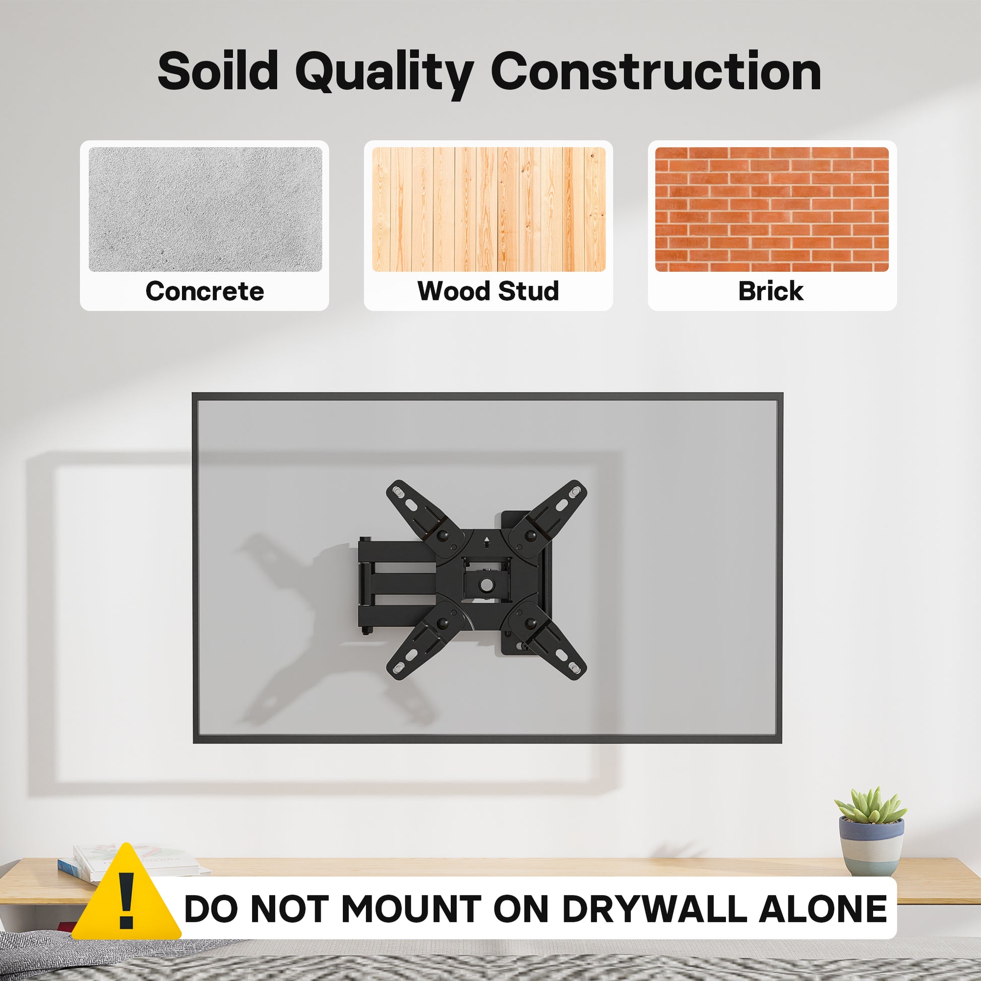 - Sturdy & Safe Construction: This heavy-duty swivel TV wall mount is made from premium reinforced steel with thickened extension arms, which is safe to support LED, LCD, and OLED TVs up to 25 kg. Suitable for installation on solid concrete walls, brick walls, or wooden studs.