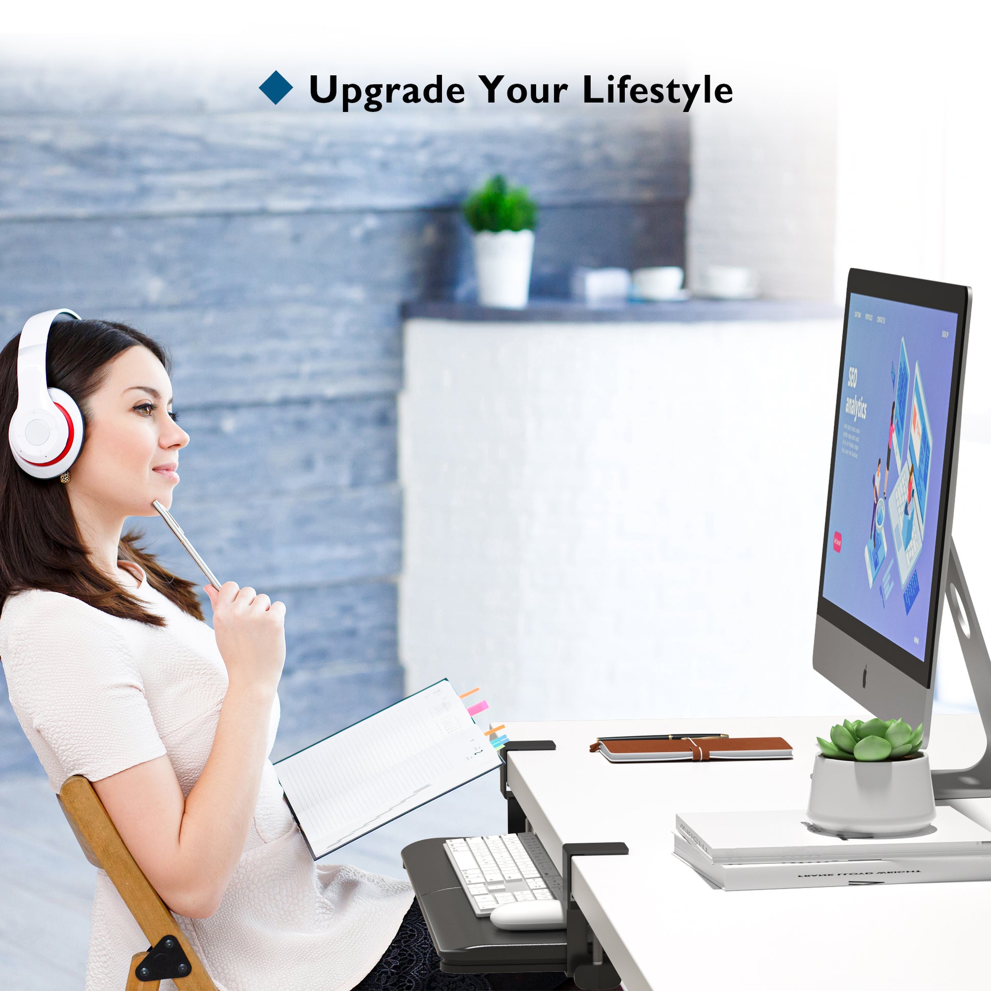 - 【Maximize Your Desk Space】Just slide in the keyboard tray under the desktop instead of placing it on the desk while not in use, saving valuable space on your workstation.