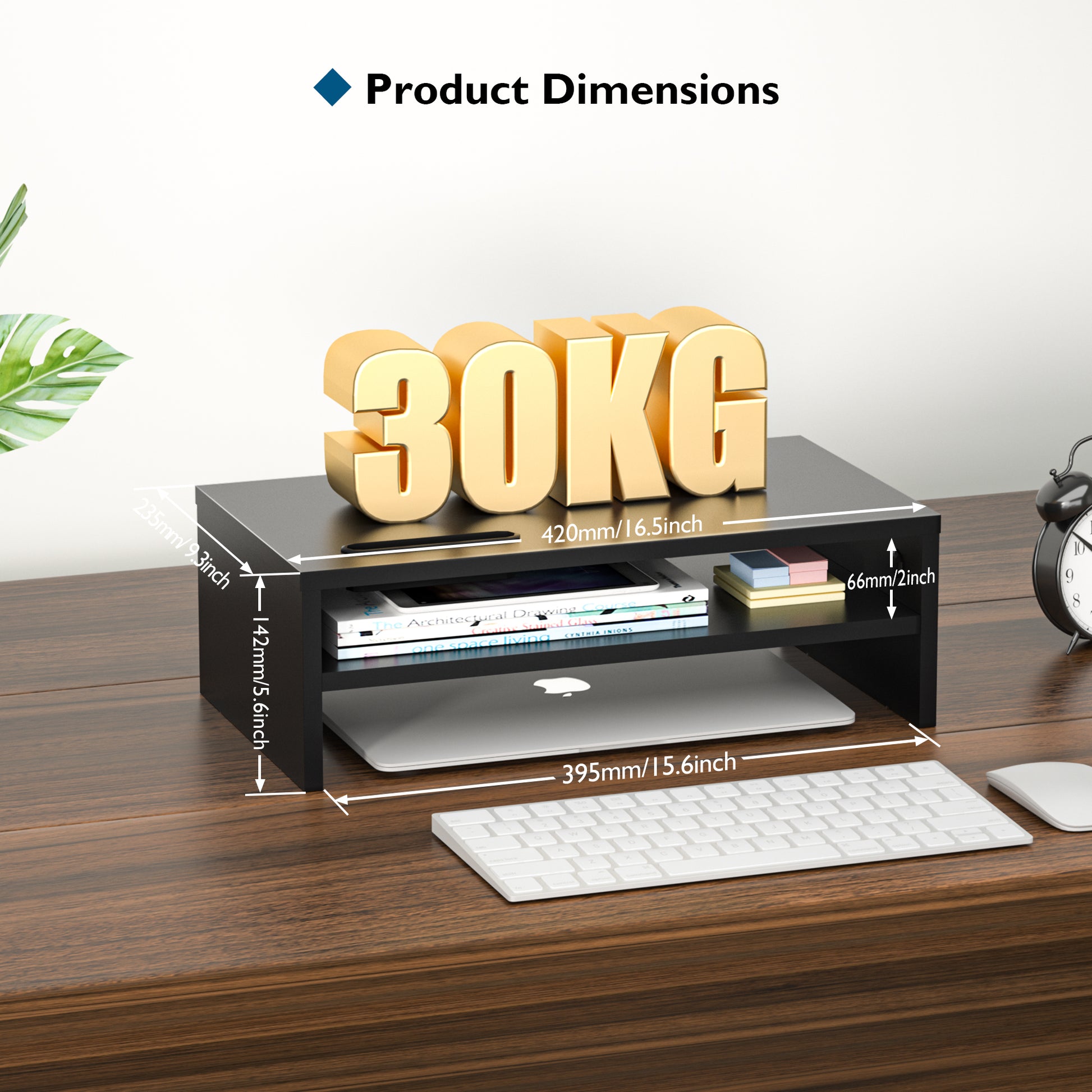 - HIGH-GRADE & ECO-FRIENDLY: Made of eco-friendly & quality matte MDF material (12mm thickness) by professional craftsman. With the exquisitely polished and smooth surface, the flat edges, and odorless properties, this wooden monitor riser offers you a stylish and durable computer monitor riser without any air pollution.