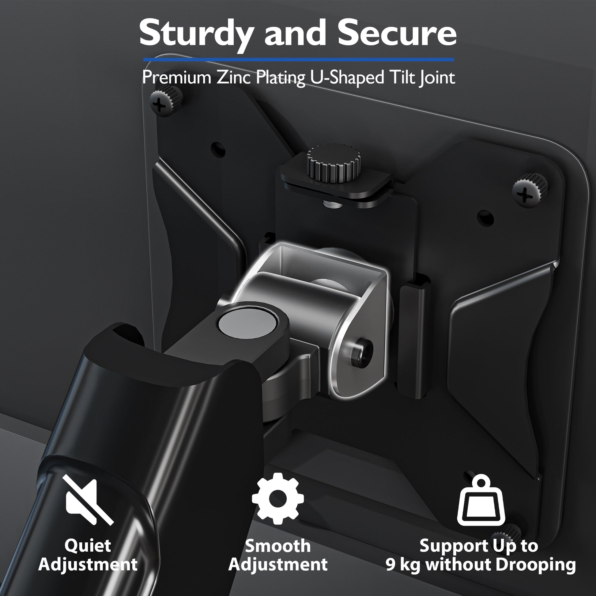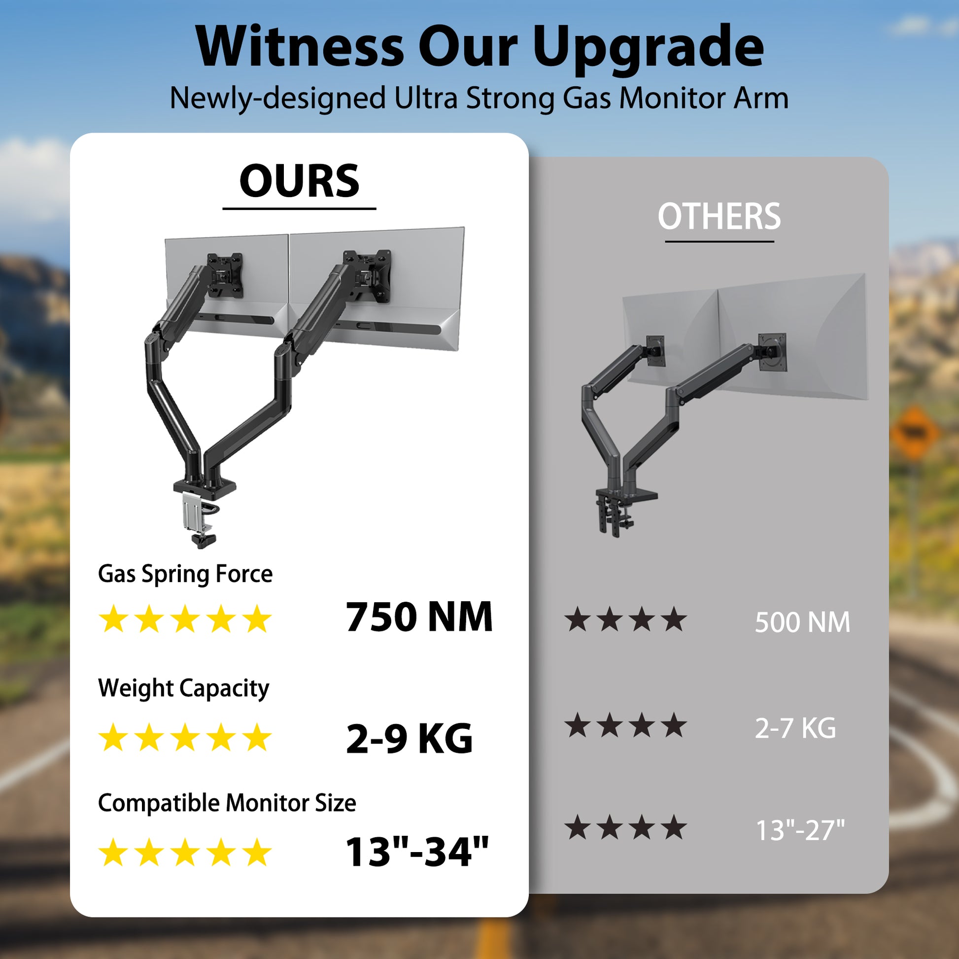 - High Quality Monitor Arms: After rigorous testing in the research phases, we have selected premium zinc material and reliable U-shaped joint head structure, which allows the monitor arm to tilt/swivel/rotate smoothly. It fits the monitor screen up to 34 inch with a maximum weight capacity of 9 kg for each arm.